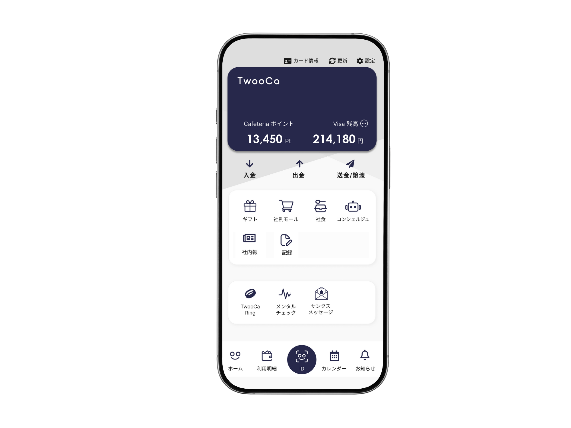 TwooCaとはなんですか? TwooCa(ツウカ)は、決済機能付社員証アプリ、およびウェブサービスです。 現在、提供しているサービスは以下の通りです。 (記録:社内アンケート 社内報:社内掲示板) TwooCa(ツウカ)は、お持ちのスマートフォンからアプリをダウンロードしていただくか、 ウェブブラウザを通じてお使いのPCやスマートフォンにてご利用いただけます。 « 前の記事 次の記事 »