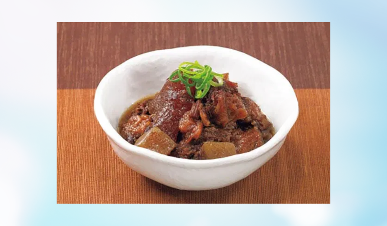国産牛すじ肉とこんにゃくを一緒に関西風の甘辛い特製タレでじっくり煮込みました。