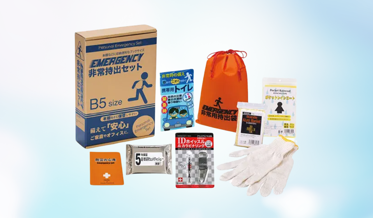 災害時に必要な最小限の内容を携帯できるコンパクトな防災セット。
